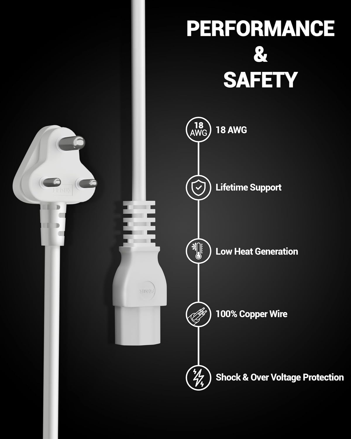 Be the first to review “FEDUS Power Cord 1.8 Meter Replacement India Plug IEC Computer Mains Power Cable Cord Wire for Desktop 3 pin Power Cable for PC, Monitor SMPS and Printer, Power Supply, TV White”