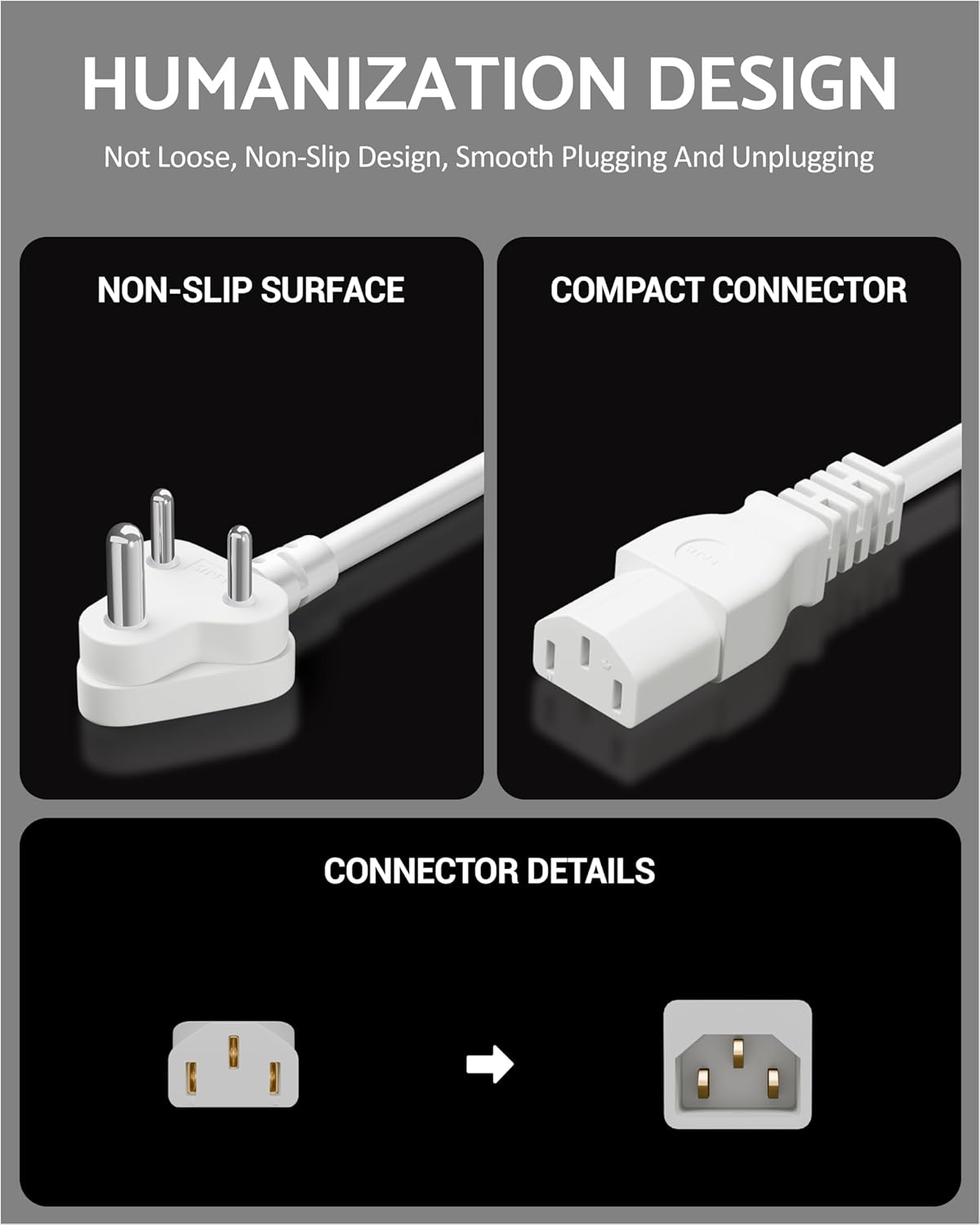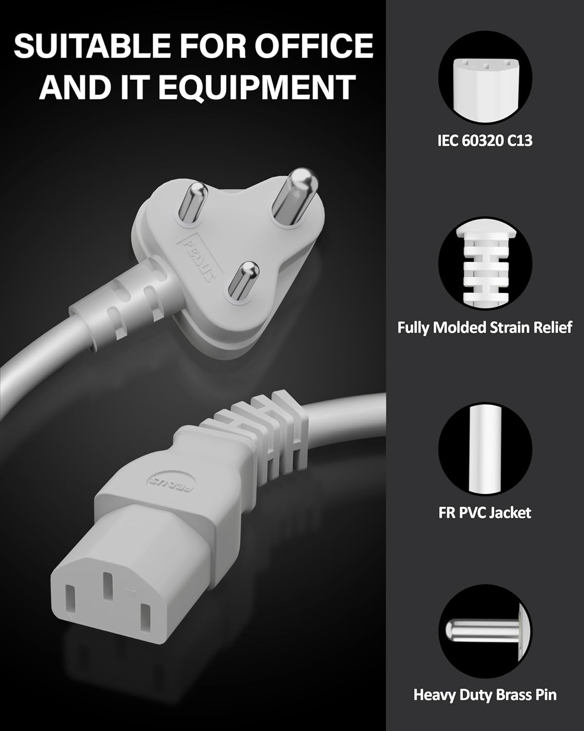 FEDUS Power Cord 1.8 Meter Replacement India Plug IEC Computer Mains Power Cable Cord Wire for Desktop 3 pin Power Cable for PC, Monitor SMPS and Printer, Power Supply, TV White