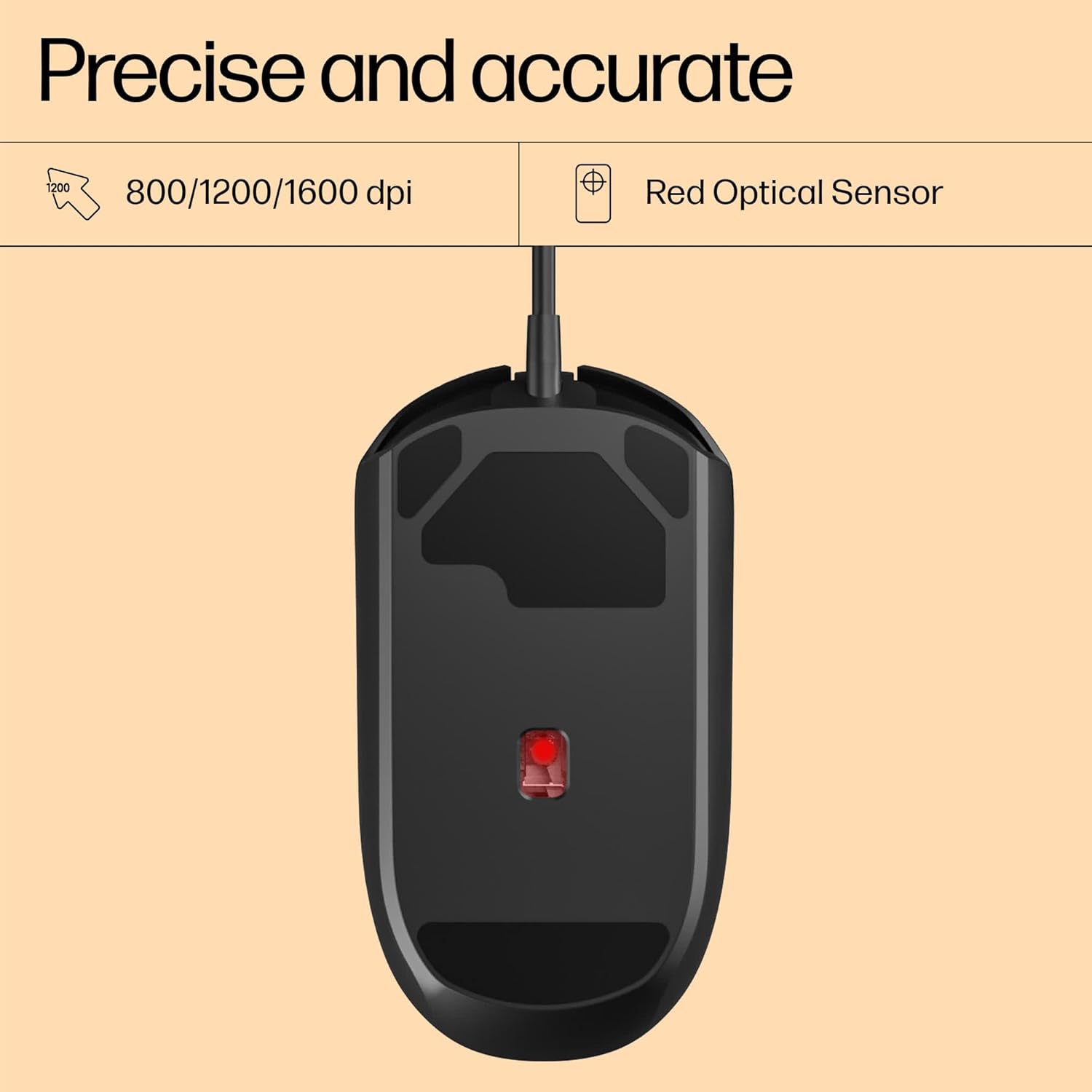 HP M070 Ergonomic Wired Mouse/ 1.5M USB Cable/Optical Engine/Accurate Positioning/ 1600 DPI with Adjustable DPI 1000-1200/1 Year Warranty