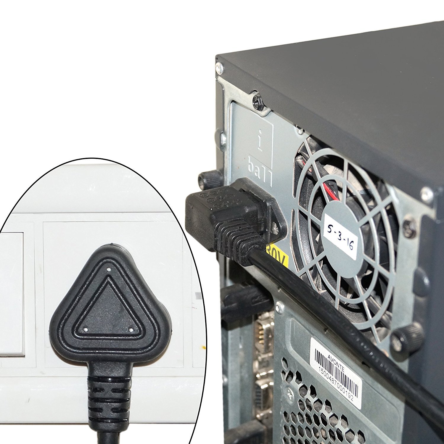 Storite 1.5M 2 Pack PC 3 Pin PC Power Cable 90 Degree L Shape Power Cable 18AWG IEC Lead Replacement for Desktop, Monitor & Printer – Black