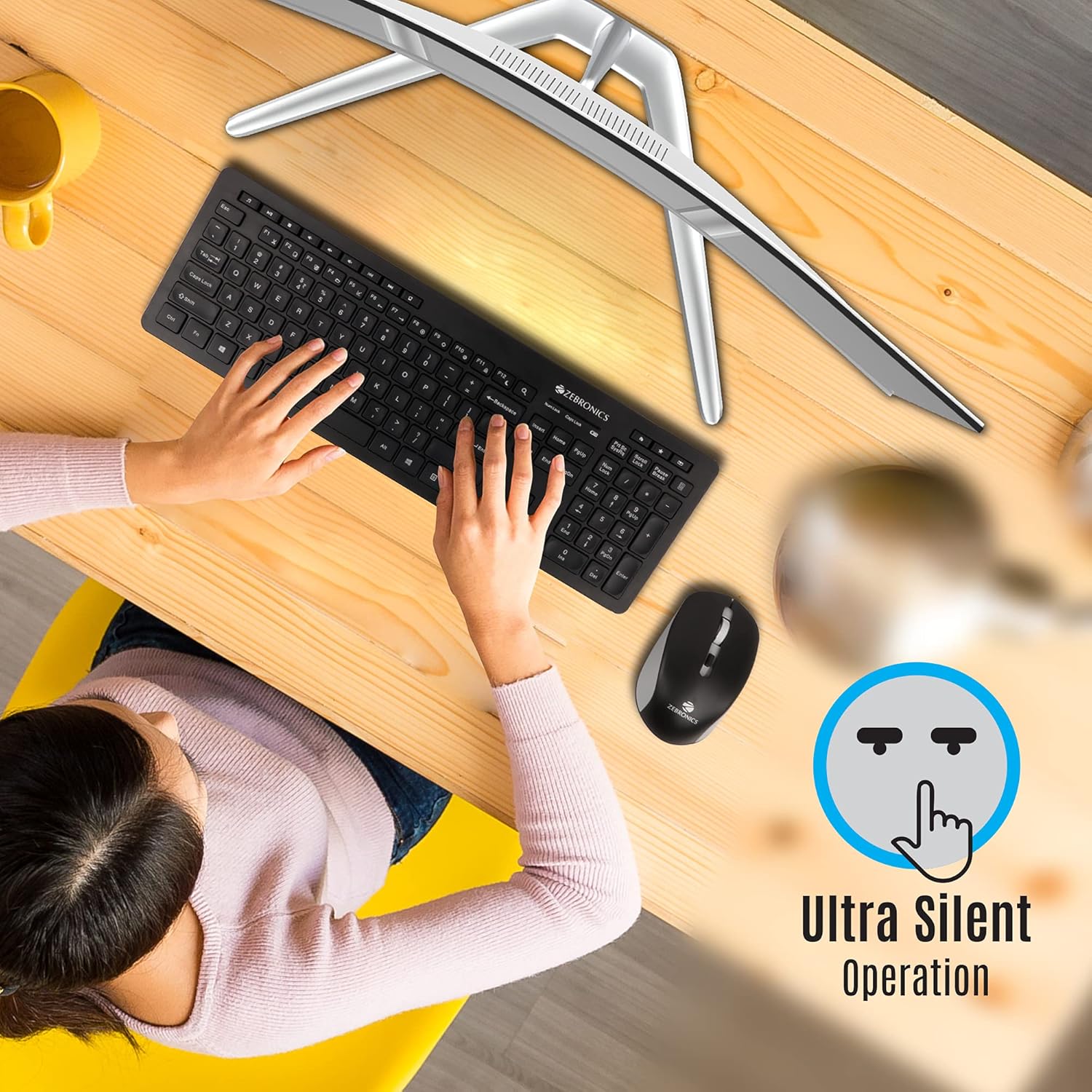 Zebronics Zeb-Companion 500 2.4GHz Wireless Keyboard & Mouse Combo, USB Nano Receiver, Chiclet Keys, Ultra Silent, Power On/Off Switch, Rupee Key, for PC/Mac/Laptop